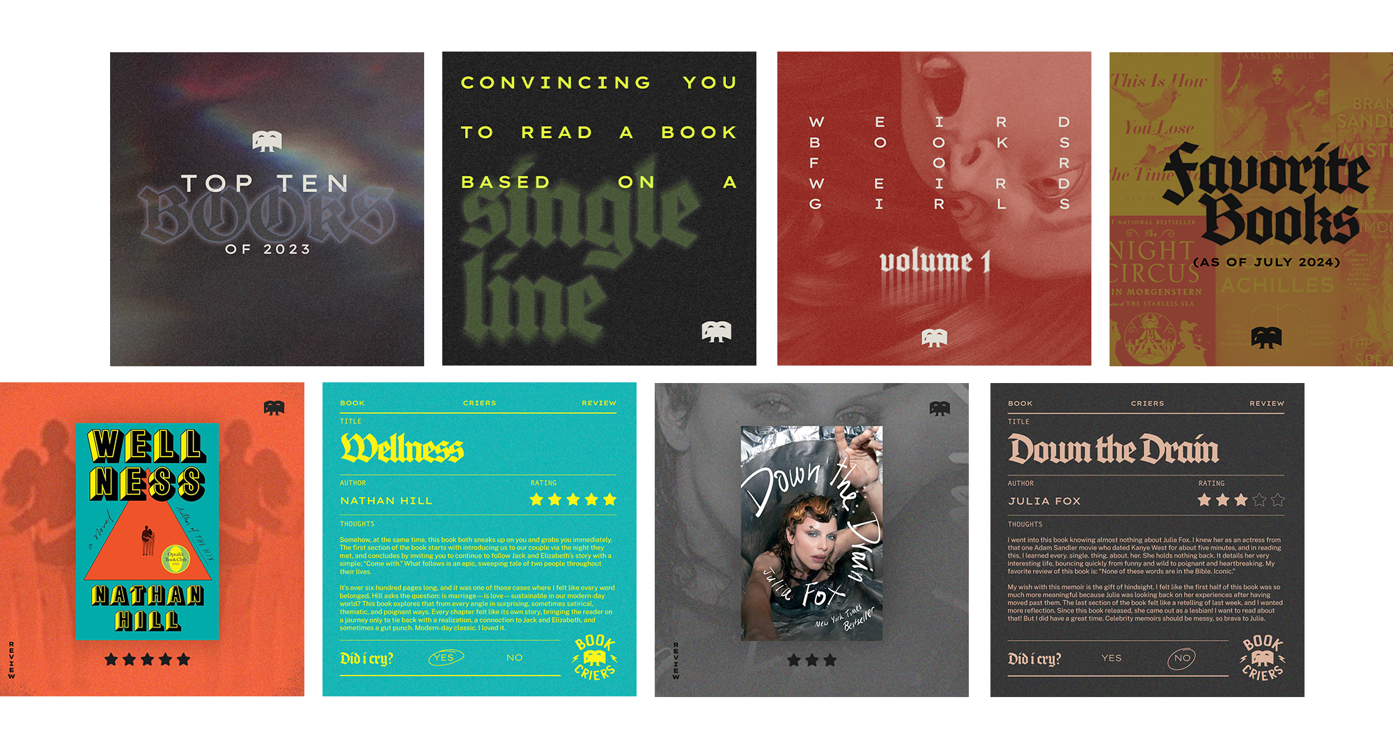 Welcome to the Book Criers Club. A dedicated instagram page to post reviews and recommendations—for readers, for criers.